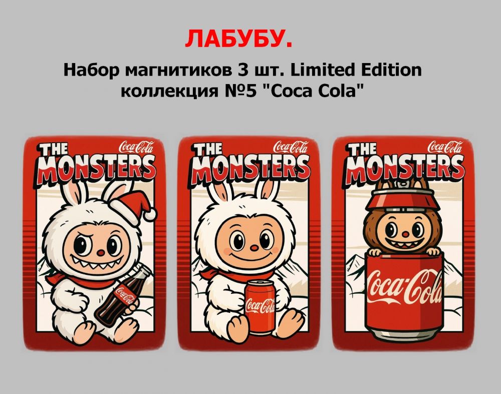 Описание ЛАБУБУ. Набор магнитиков 3 шт. Limited Edition коллекция №5 "Coca Cola"