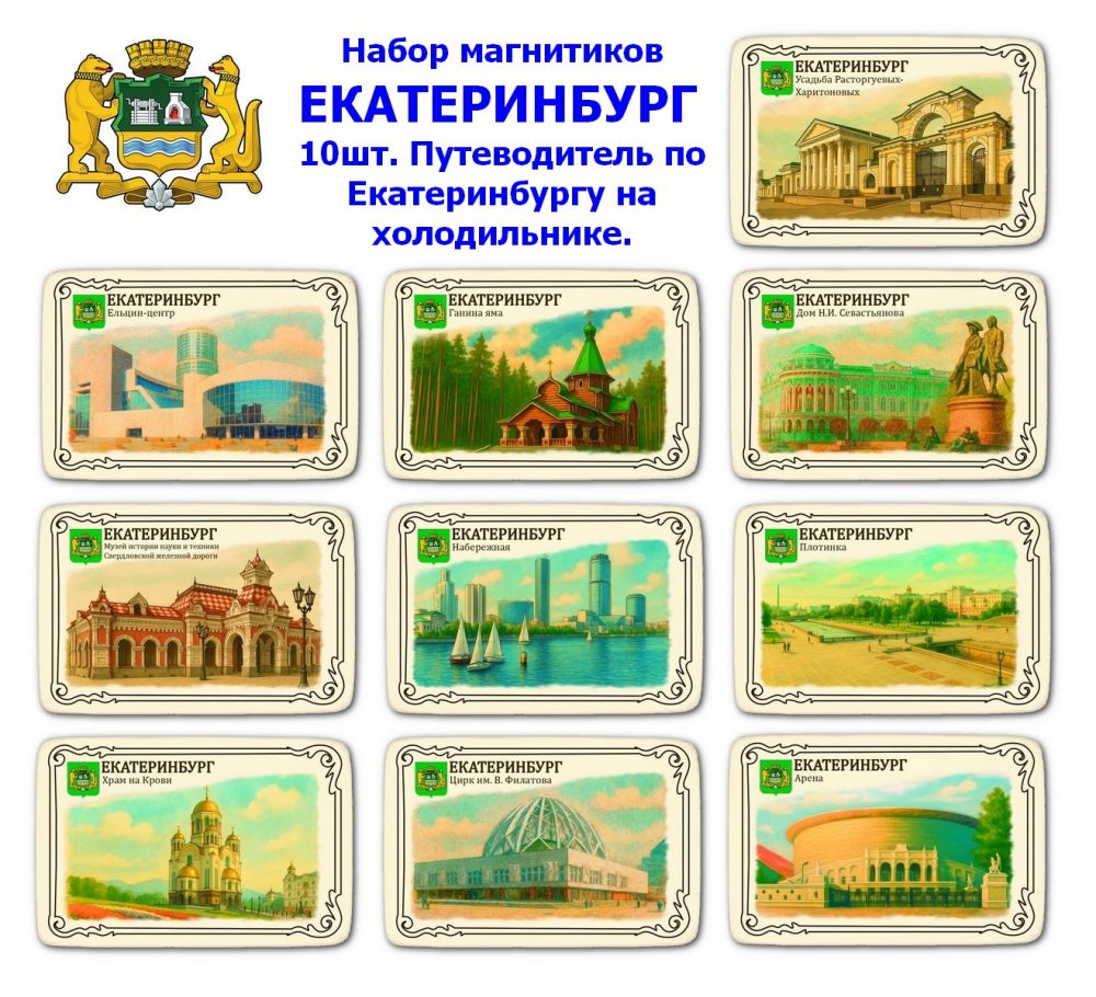 Описание Набор магнитиков ЕКАТЕРИНБУРГ 10шт. Путеводитель по Екатеринбургу на холодильнике. Oz