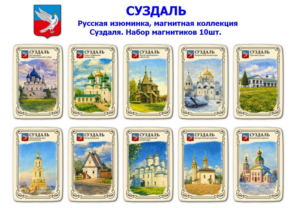 Описание Набор магнитиков СУЗДАЛЬ 10шт. Русская изюминка, магнитная коллекция Суздаля. Oz