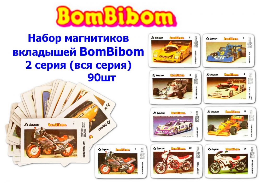 Магнитки с изображениями автомобилей и мотоциклов, из культовой жевательной резинки детства 1980-90х годов СССР. Представлены изображения из частной коллекции вкладышей BomBibom 2 серии, 90шт.