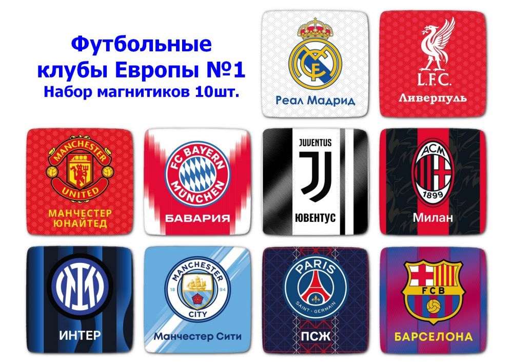Настоящая находка для болельщиков и любителей футбола! Эксклюзивный набор из 10 ярких магнитов с логотипами известнейших футбольных команд континента.