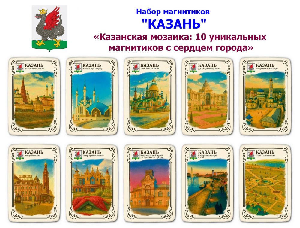 Набор магнитиков "КАЗАНЬ" 10шт. «Казанская мозаика: 10 уникальных магнитиков с сердцем города».