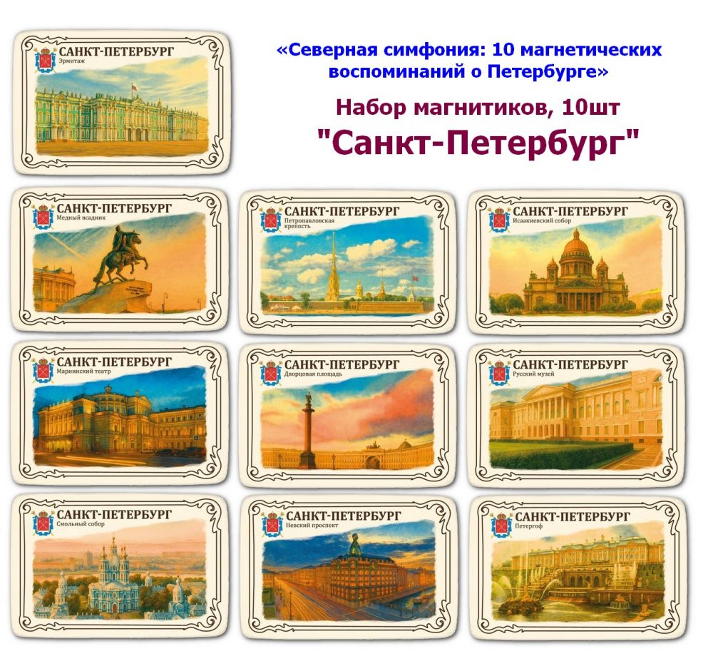 Набор магнитиков "Санкт-Петербург" 10шт. «Северная симфония: 10 магнетических воспоминаний о Петербурге»