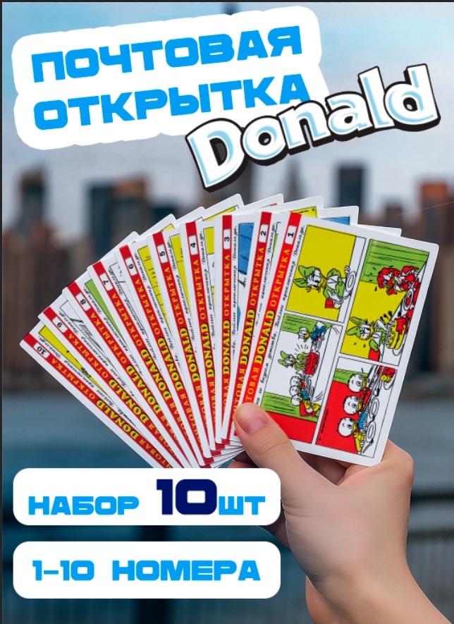 Описание Набор почтовых открыток 10шт (1-10). Веселые приключения Дональда. Открытки со вкусом детства.