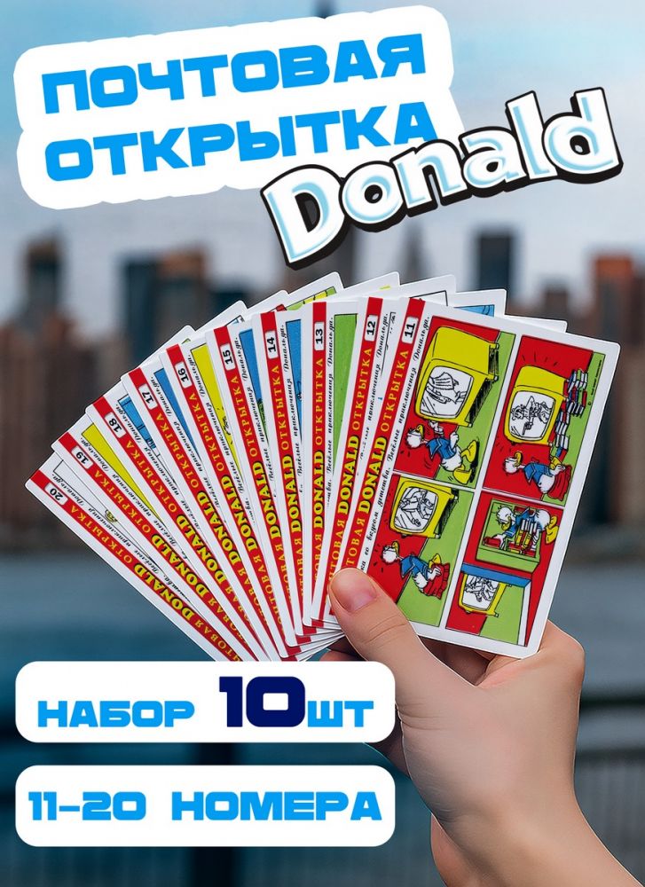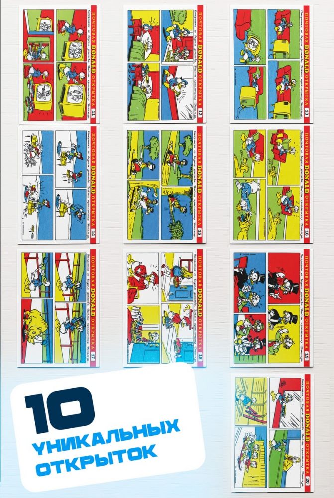 Описание Набор почтовых открыток 10шт (11-20). Веселые приключения Дональда. Открытки со вкусом детства.