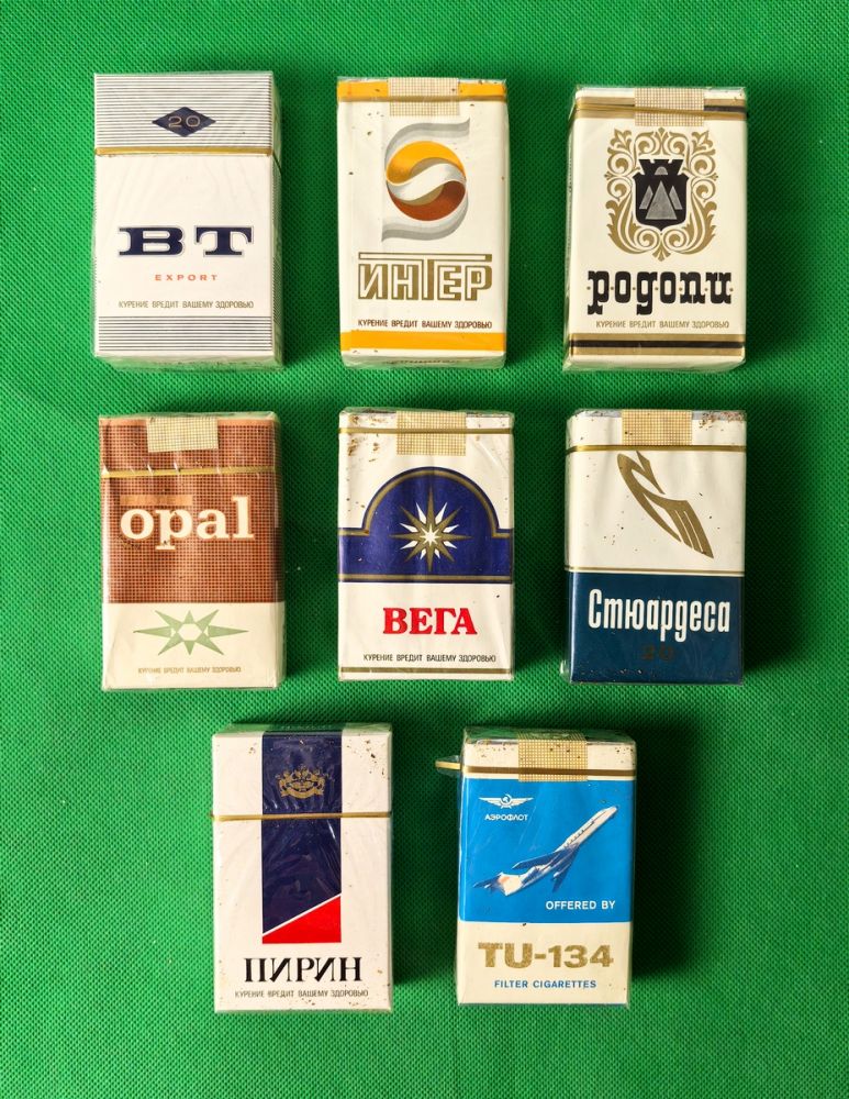 Набор 8шт Сигареты коллекционные - Стюардесса, ТУ 134, Родопи, Интер, Вега, Пирин, BT, Opal. Болгария 80-90-е. годы verified