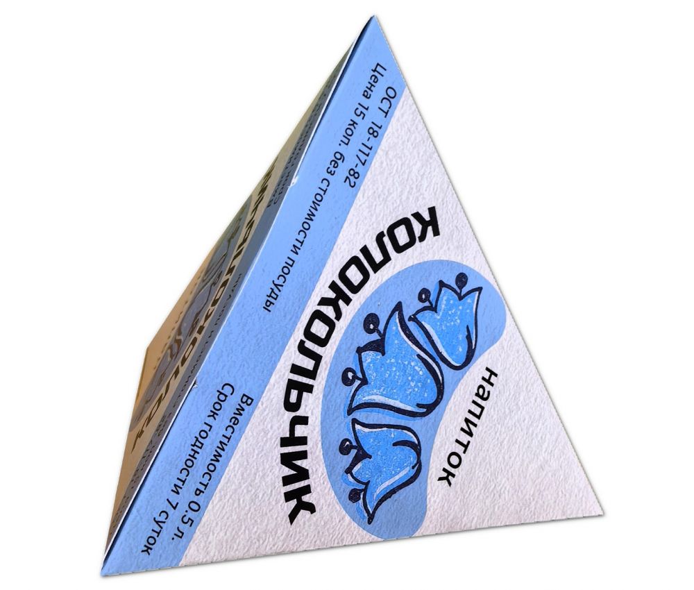 Мы решили воссоздать тот самый символ из прошлого, но уже без технологии ТетраПак. Наш треугольник стилизован под ретро дизайн и его можно использовать не только для декора в стиле СССР, но также ему можно найти и практическое применение. К примеру его можно использовать как подарочную упаковку. В него можно сложить конфеты или поместить другой небольшой памятный, винтажный презент. Ну, а чтобы получился уже некий антураж из советского прошлого, то пирамидки лучше всего поместить в авоську.