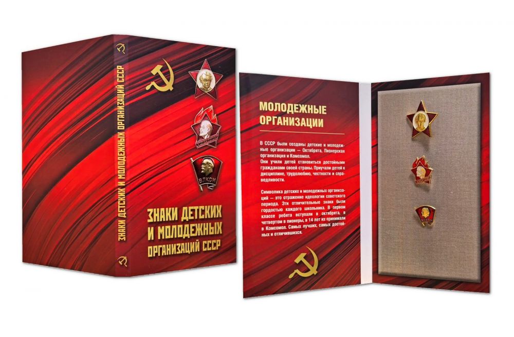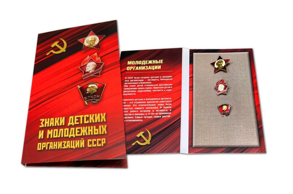 РОЖДЕННОМУ в СССР! Набор значков 3шт (Октябрята, Пионерия, ВЛКСМ - Комсомол) в буклете Oz