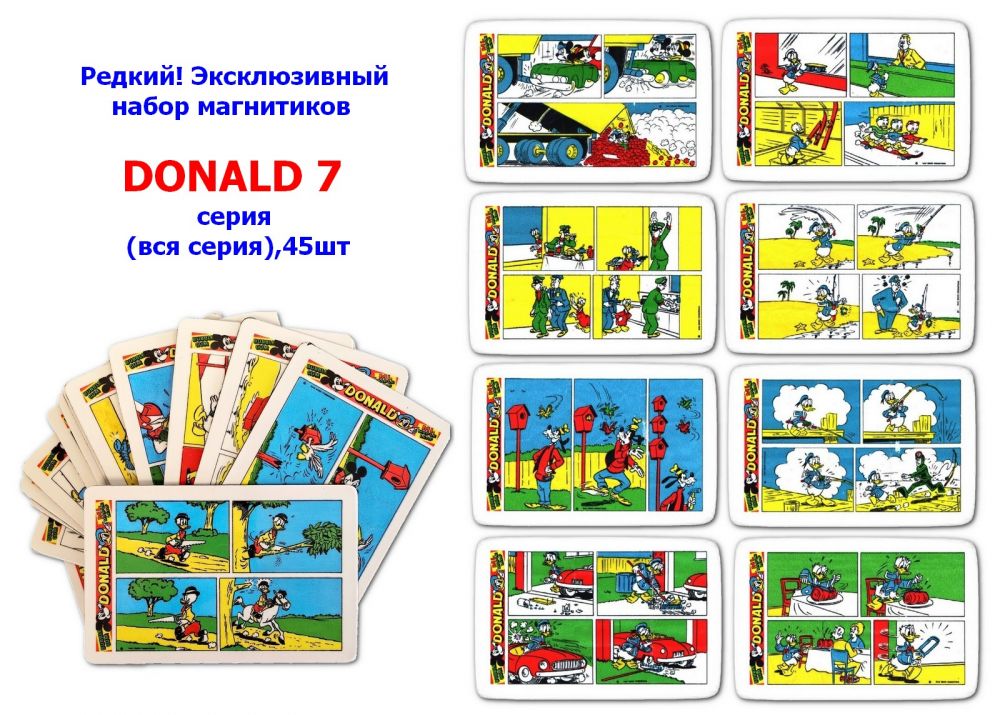 Редкий! Эксклюзивный набор магнитиков DONALD 7 серия (вся серия), 45шт