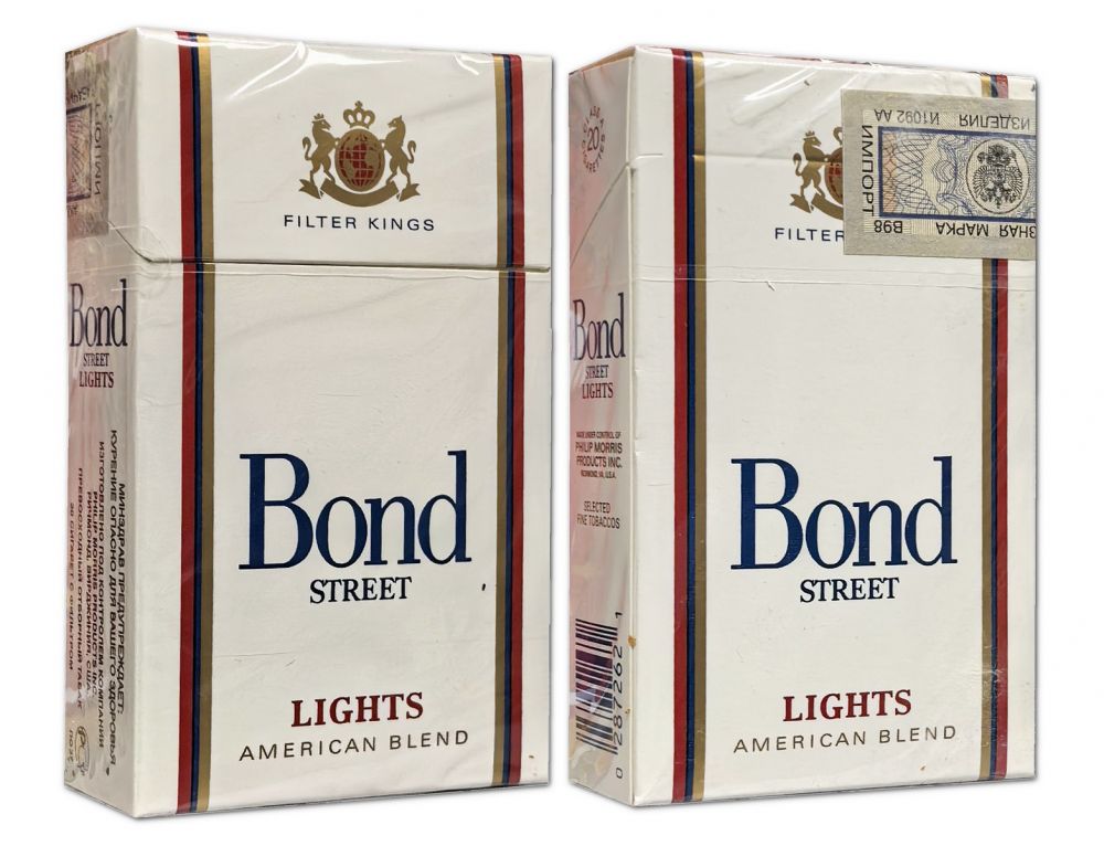 Сигареты - BOND Street Lights (с акцизом 1998 год). Made in USA. Редкие. 90е годы. Оригинал verified