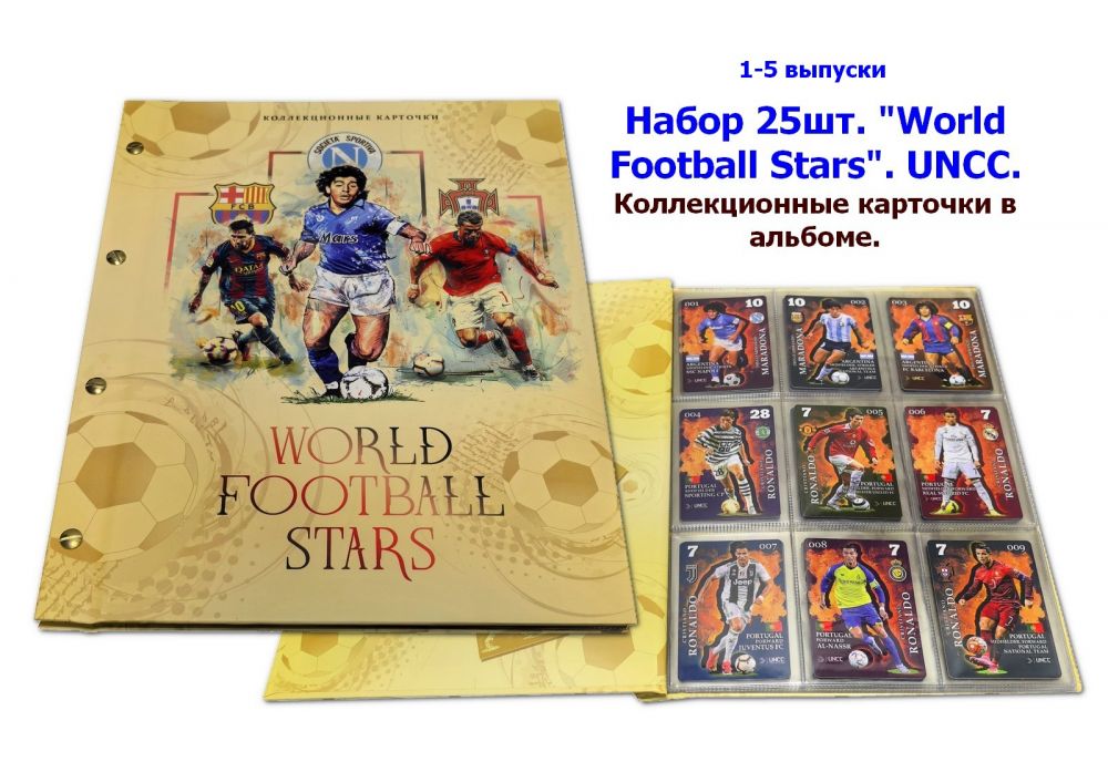 Набор 25шт (1-5 выпуски). "World Football Stars". UNCC. Коллекционные карточки в альбоме. Oz
