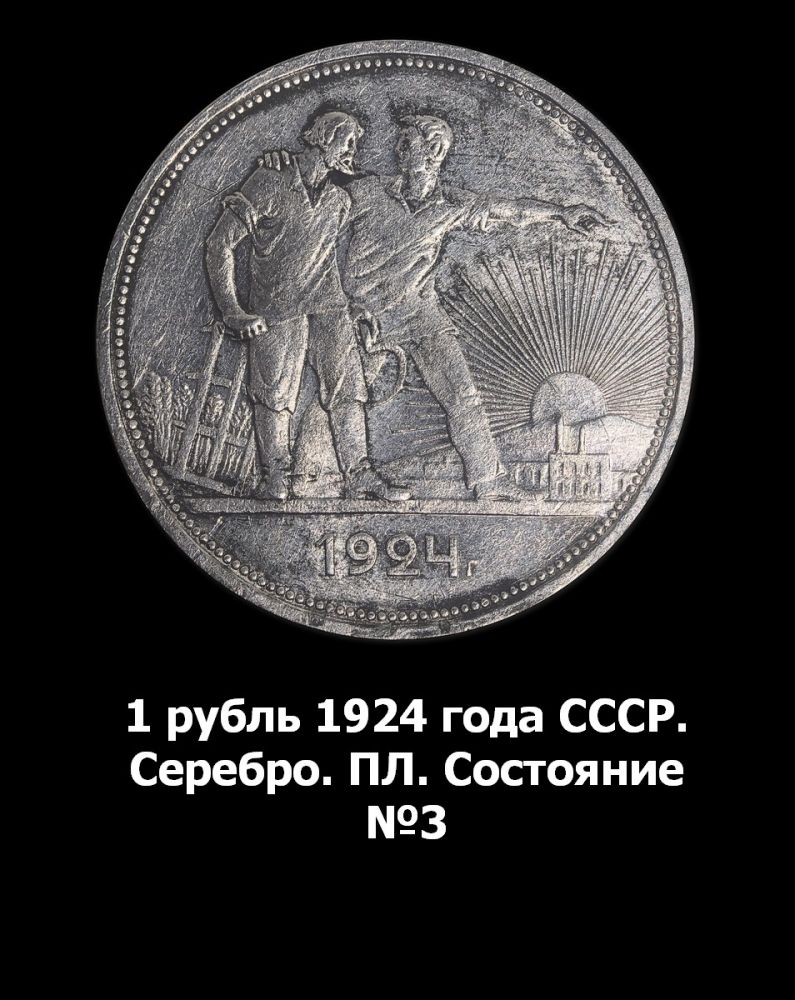 Описание 1 рубль 1924 года СССР. Серебро. ПЛ. Состояние №3 Msh