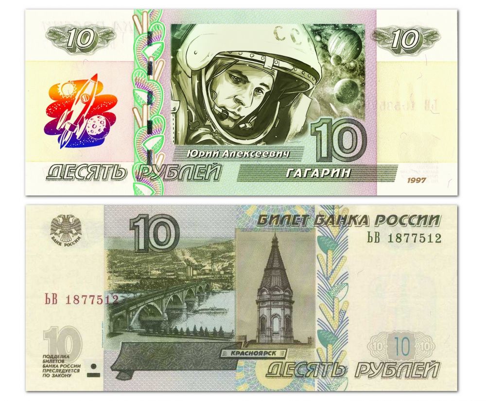 10 рублей - ГАГАРИН Ю.А. Космос СССР. Памятная банкнота с надпечаткой.