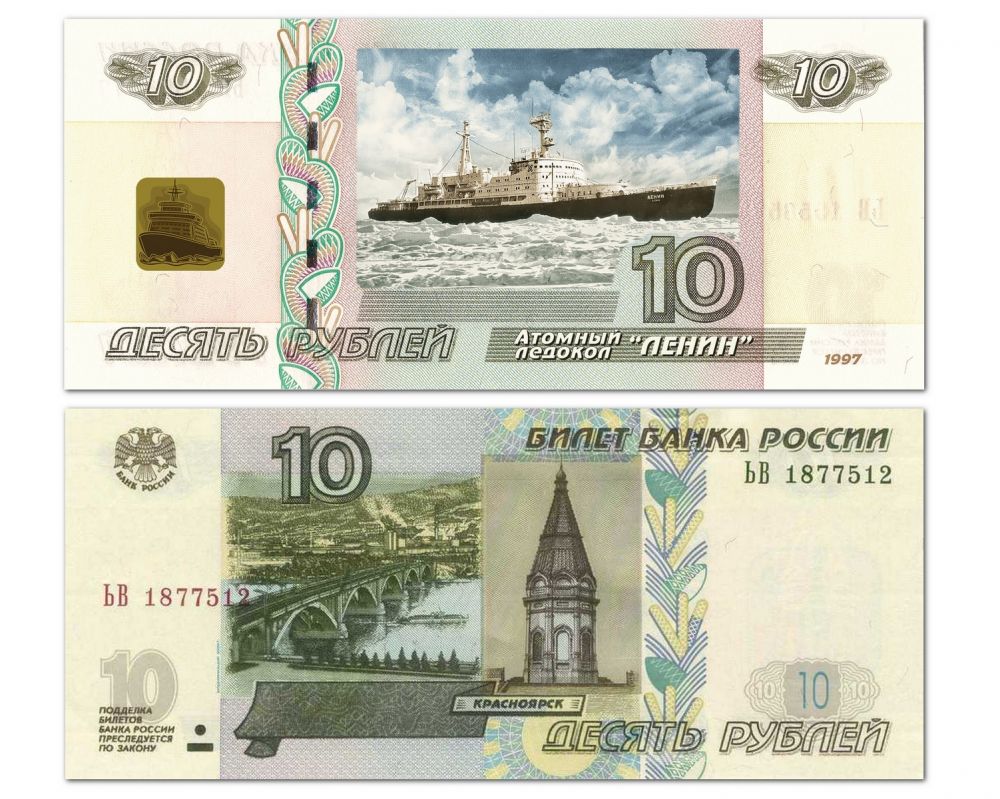 10 рублей — Ледокол Ленин. Мурманск. Памятная банкнота с надпечаткой.