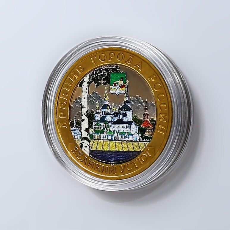 10 РУБЛЕЙ 2007 ГОД. ВЕЛИКИЙ УСТЮГ, СПМД ЦВЕТНАЯ ЭМАЛЬ