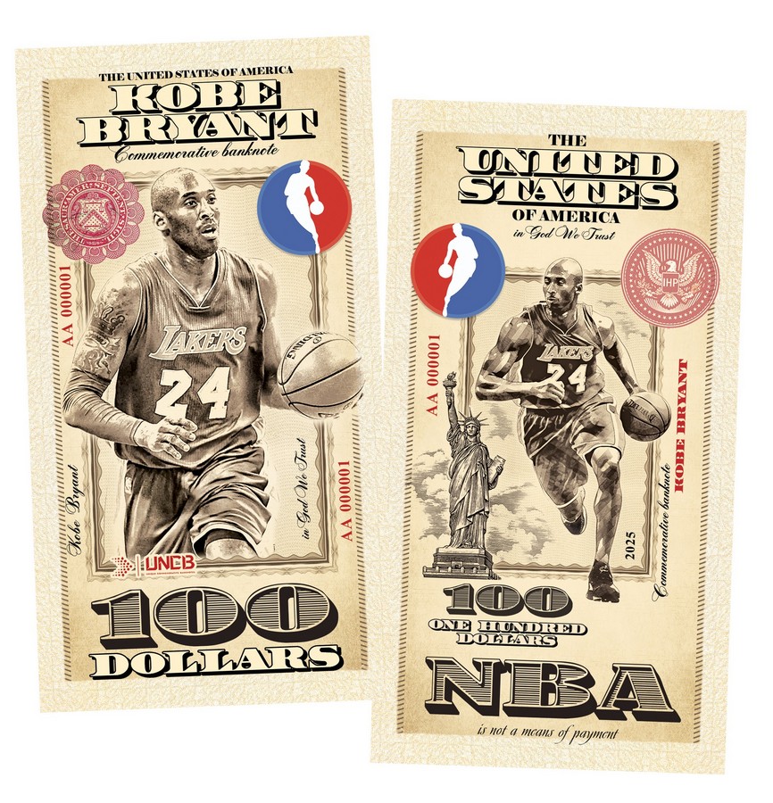 100 долларов (USA Dollars) — США. Коби Брайант (Kobe Bryant) NBA. Памятная банкнота. UNC