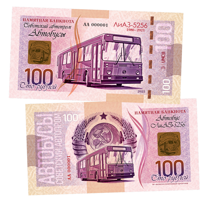 Оставить отзыв о «100 рублей — ЛиАЗ-5256. Советский Автопром — Автобусы. Памятная банкнота. UNC Oz Msh»