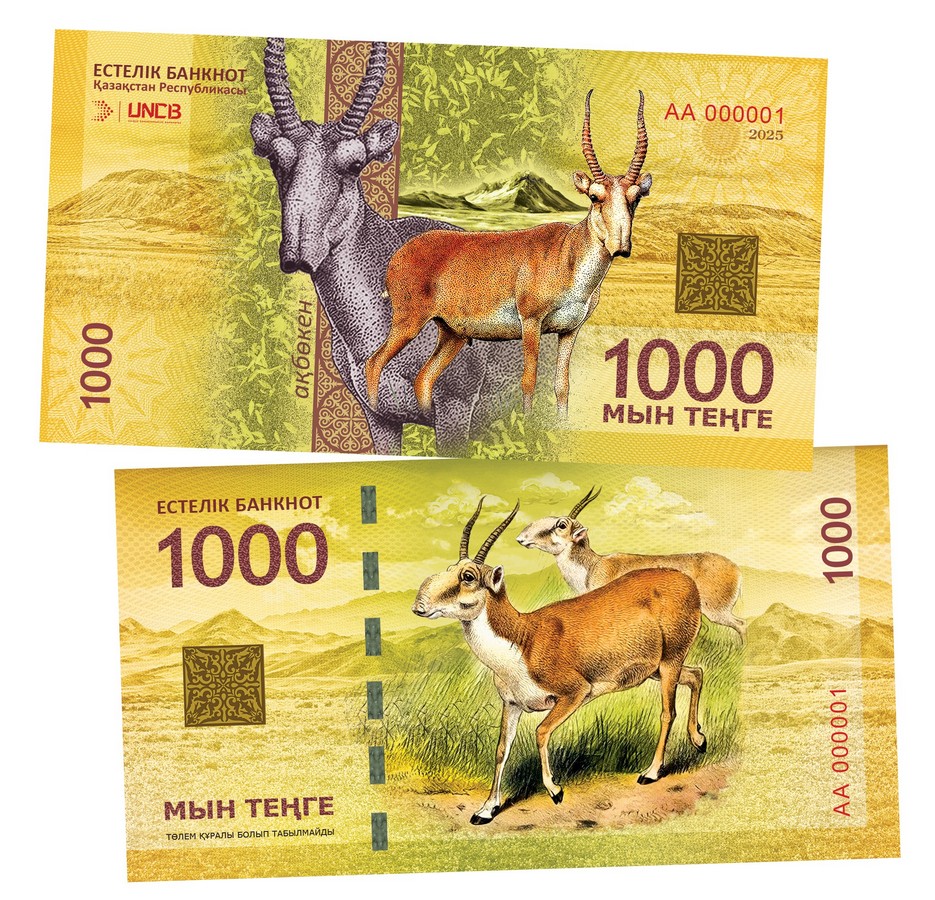 Описание 1000 тенге — Сайгаки. Памятная банкнота. UNC (БМ) Msh Oz