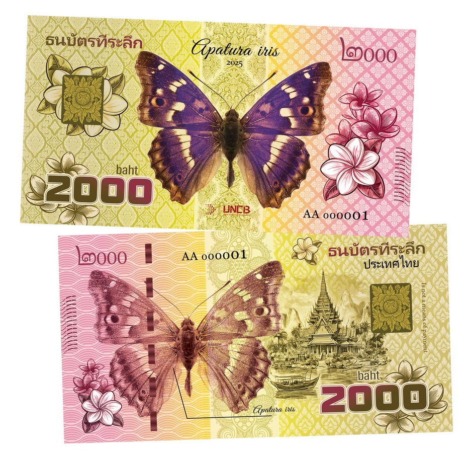 Главная » Каталог товаров » ПАМЯТНЫЕ БАНКНОТЫ » 2000 бат Тайланд — Apatura iris. Серия Бабочки мира. Памятная банкнота. UNC (БМ) Oz