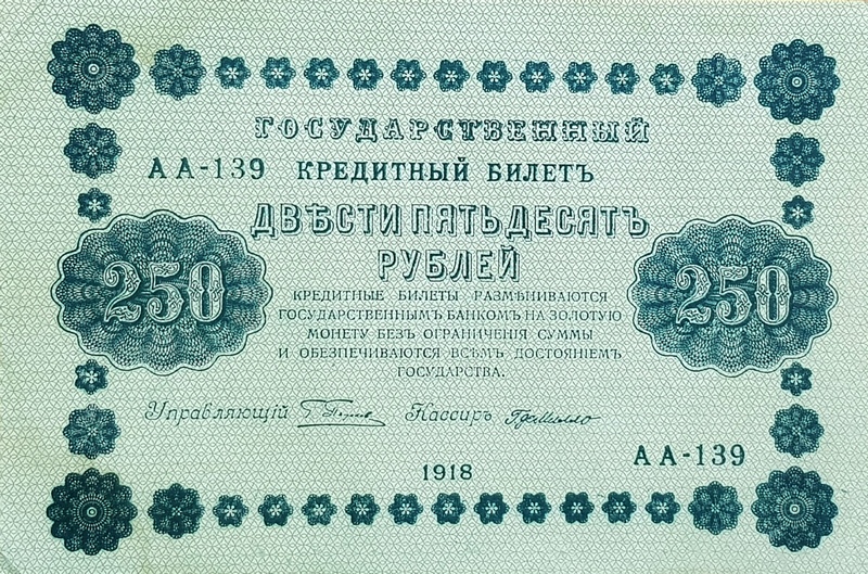 Описание 250 рублей 1918. Состояние VeryFine ++