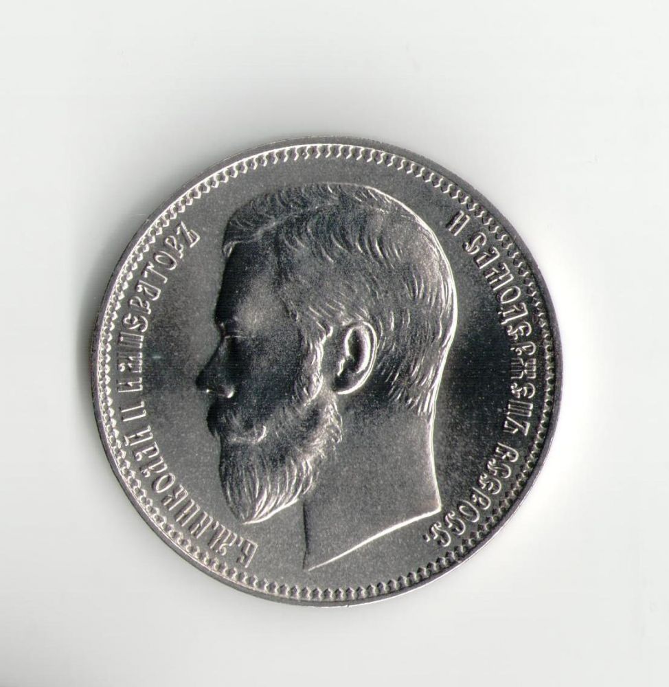 Реверс: слева вдоль края монеты надпись «Б.М. НИКОЛАЙ II ИМПЕРАТОР», справа вдоль края монеты надпись «И САМОДЕРЖЕЦ ВСЕРОСС.», в середине обращенная влево голова Императора Российской империи Николая II.