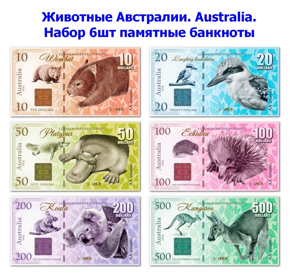 Описание Набор 6шт Австралия — Серия Животные Австралии. Памятные банкноты. UNC Oz