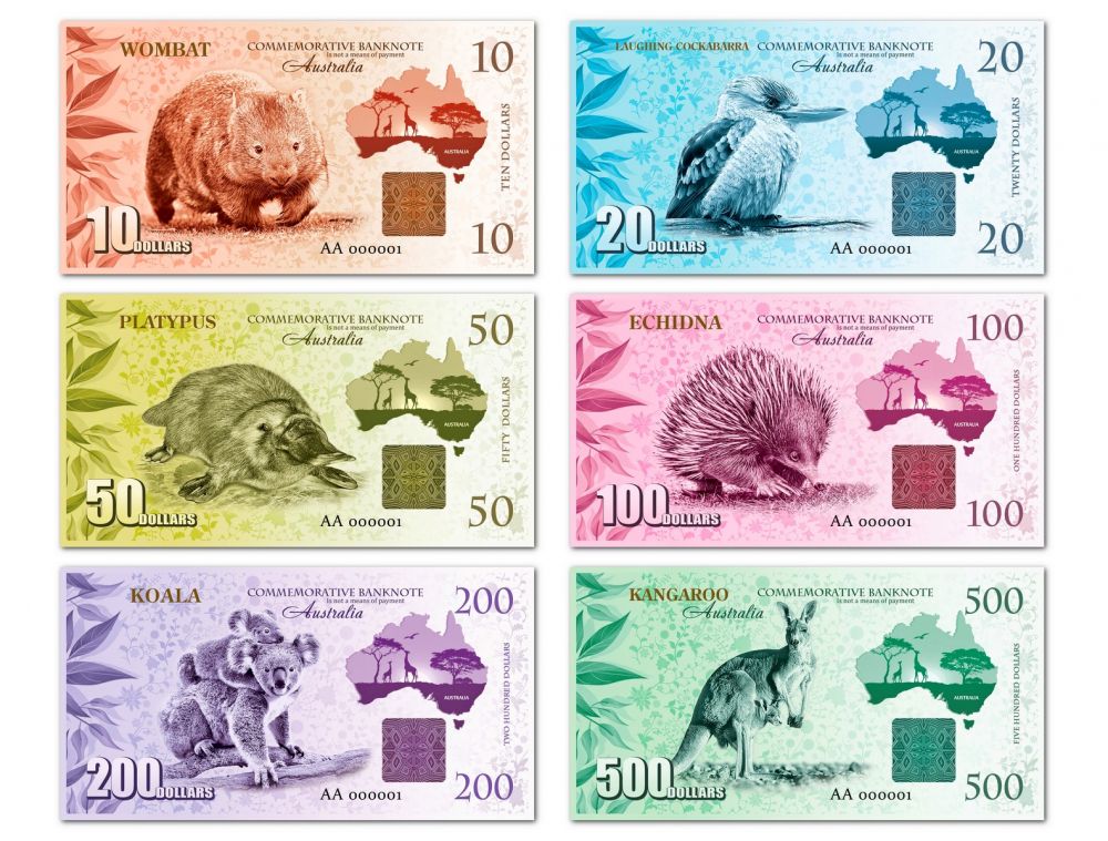 Главная » Каталог товаров » ПАМЯТНЫЕ БАНКНОТЫ » Набор 6шт Австралия — Серия Животные Австралии. Памятные банкноты. UNC Oz