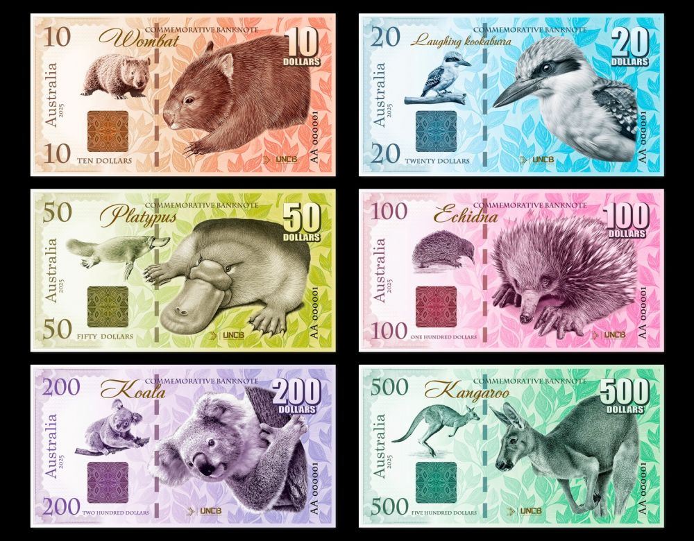 Набор 6шт Австралия — Серия Животные Австралии. Памятные банкноты. UNC