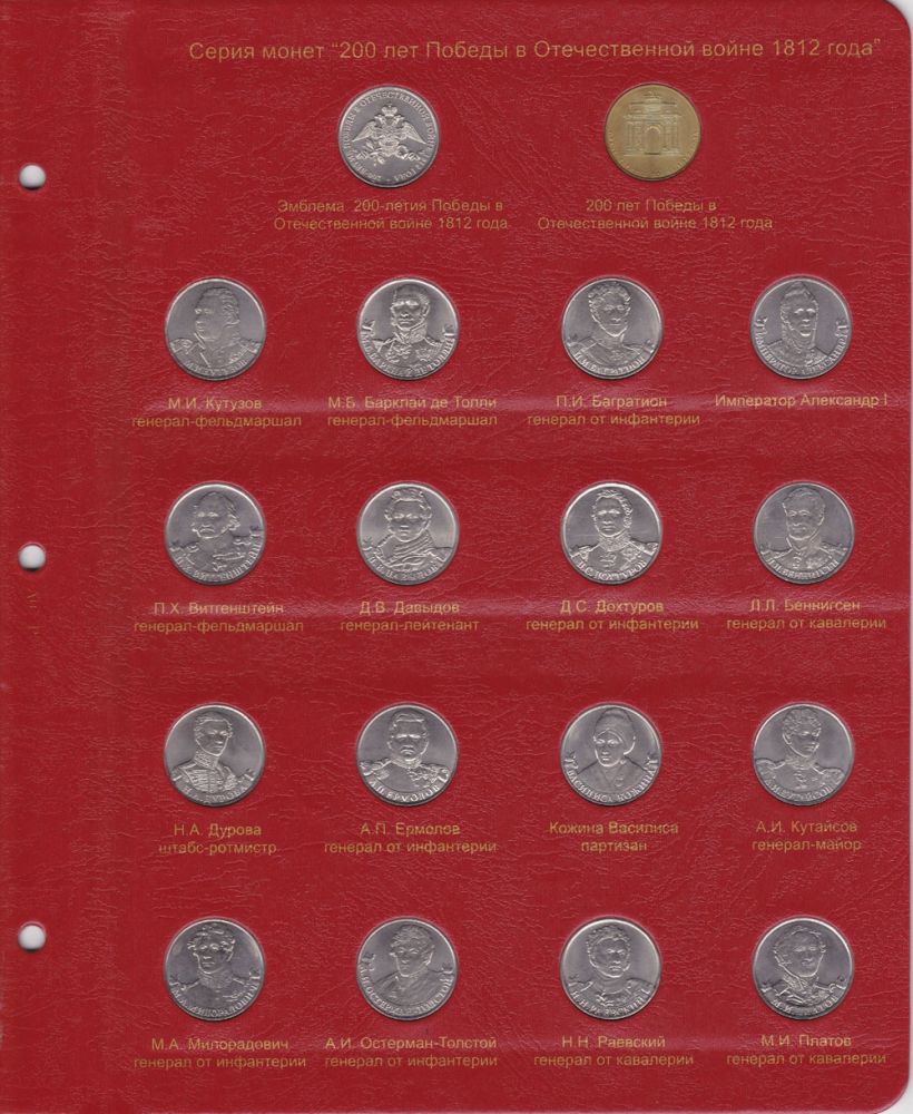 - набор монет "200 лет Победы в Отечественной войне 1812 года" (номиналом 2, 5 и 10 рублей - всего 28 монет);