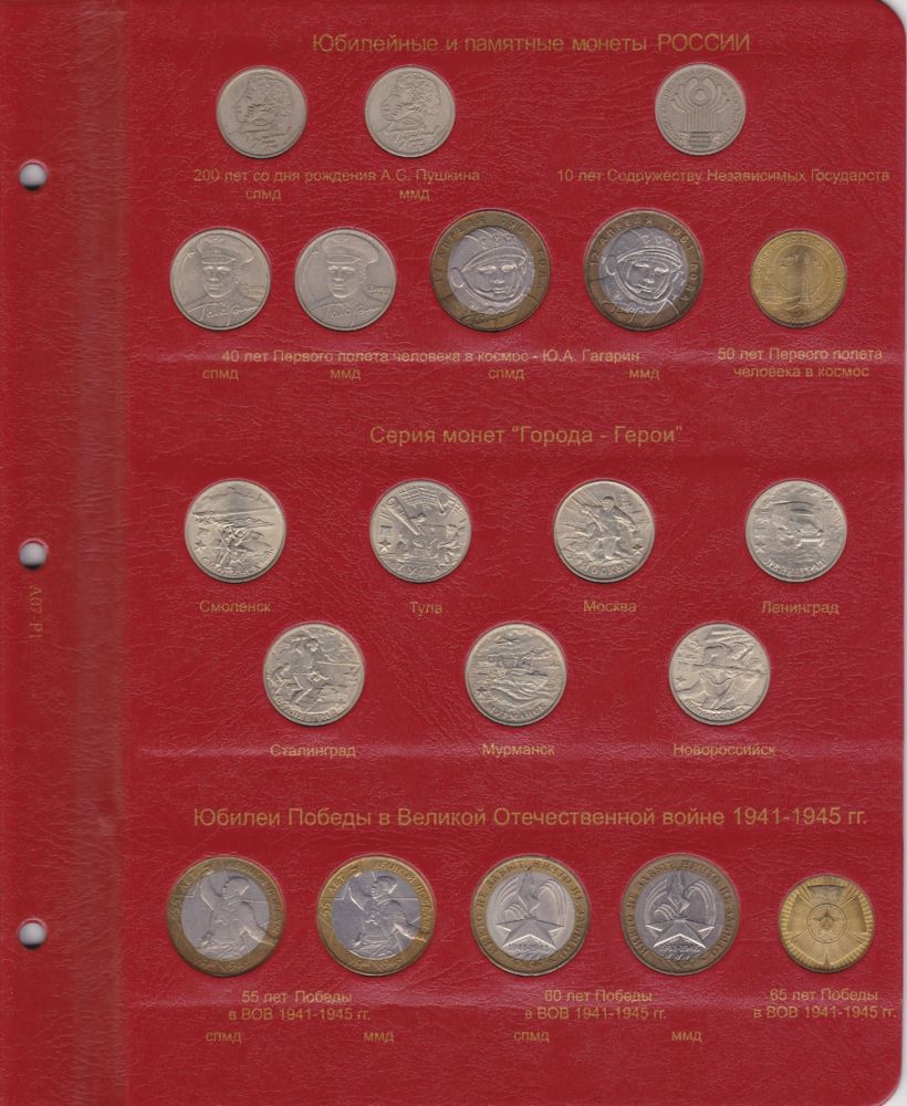 Альбом для юбилейных и памятных монет России дает возможность разместить Вашу коллекцию монет, разделив их по монетным дворам и сериям. Альбом для юбилейных и памятных монет России включает в себя сразу несколько нумизматических альбомов, он уникален и универсален. Вы экономите, оформляя всю коллекцию юбилейных монет.