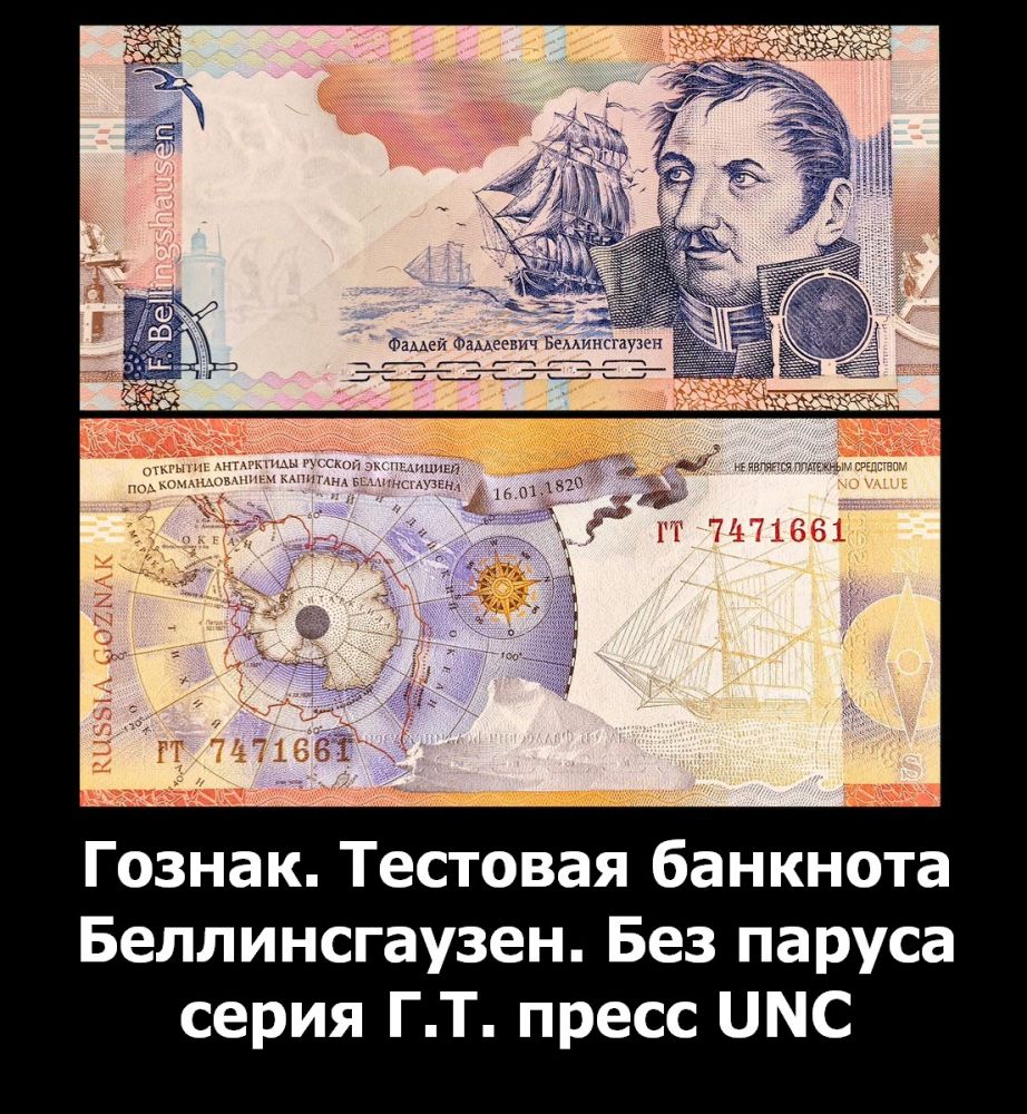 ГОЗНАК. "Ф.Ф.Беллинсгаузен" - тестовая банкнота, образца 2008 года РОССИЯ. РЕДКОСТЬ! Oz