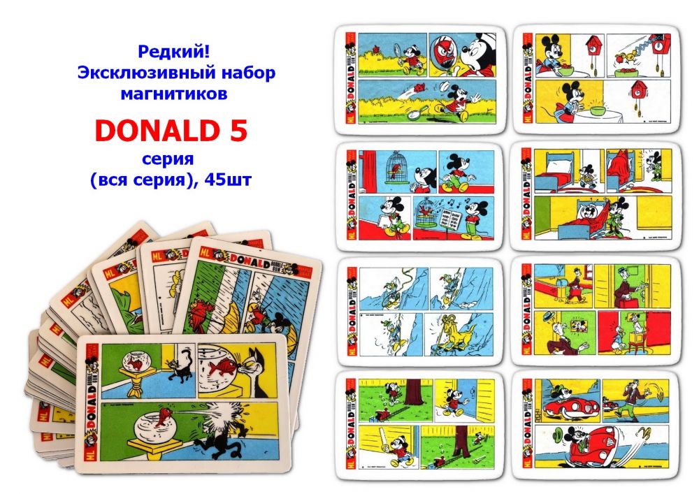 Редкий! Эксклюзивный набор магнитиков DONALD 5 серия (вся серия), 45шт