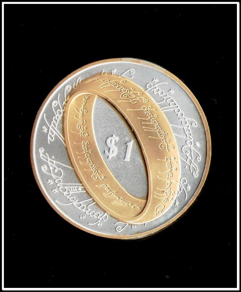 Описание Кольцо всевластия 1 доллар Новая Зеландия 2003 Копия позолота и посеребрение, сувенирная
