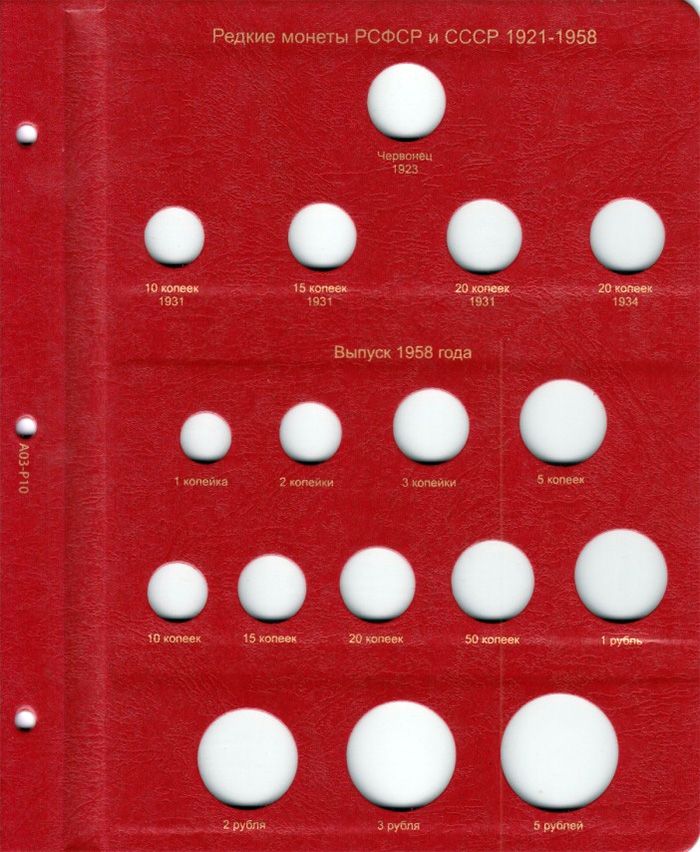 Описание Лист для редких монет РСФСР и СССР 1921-1958 гг. [A3P10]