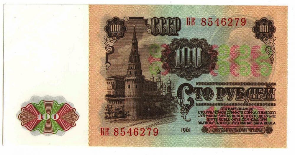 Описание 100 РУБЛЕЙ 1961 ГОДА СССР. UNC ПРЕСС