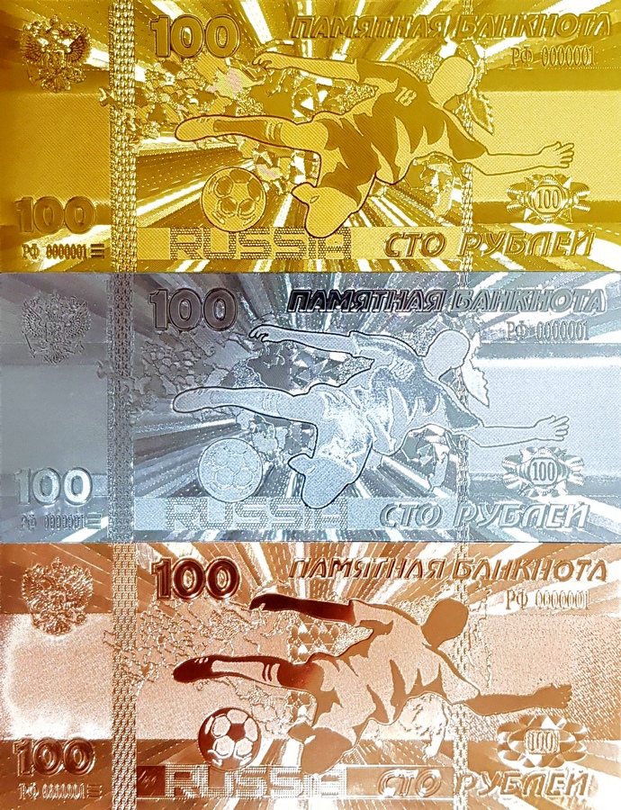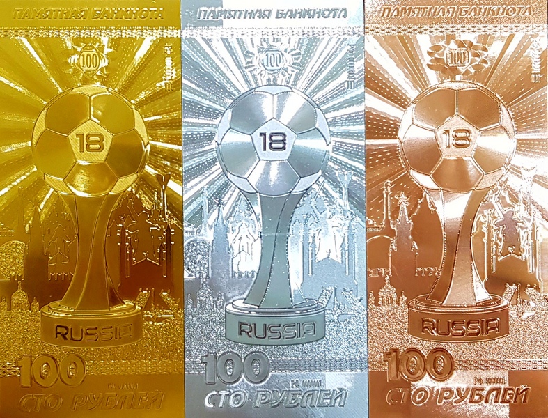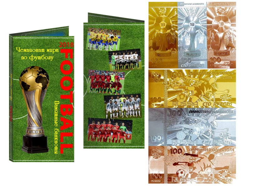 Описание НАБОР 100 РУБЛЕЙ ФУТБОЛ - ЗОЛОТО + СЕРЕБРО + БРОНЗА, ЦВЕТ, СУВЕНИРНЫЕ В БУКЛЕТЕ