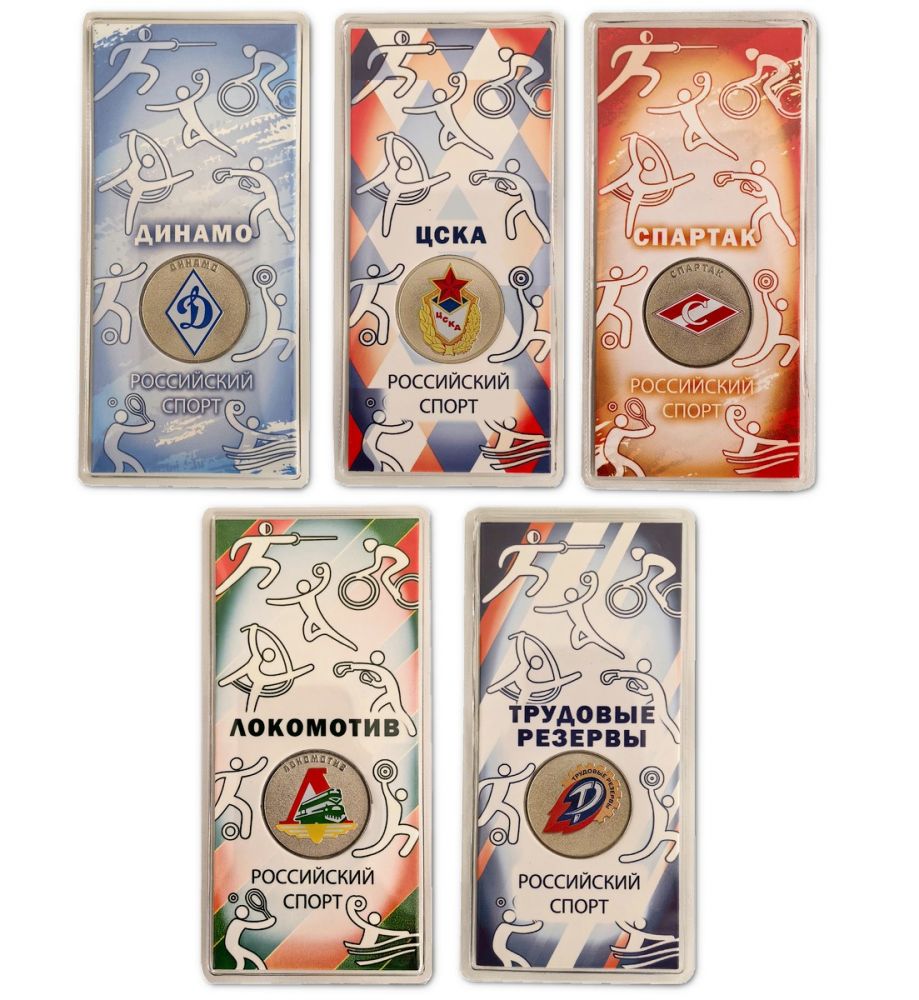 В набор входит 5 монет серии Российский спорт (спортивные, футобльные клубы) в официальных блистерах Гознак: