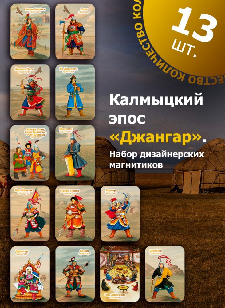 • Погрузитесь в мир древней калмыцкой культуры вместе с уникальным набором магнитиков «Калмыцкий эпос Джангар». Этот изысканный подарок включает в себя 13 магнетичных изображений, каждый из которых представляет собой яркую иллюстрацию легендарного эпоса «Джангар».